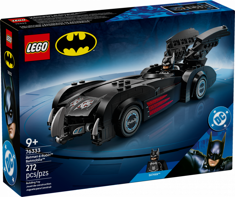 LEGO DC 76333 Batman & Robin Batmobile telt 272 stenen en 1 minifiguur. De afmetingen zijn 6 cm hoog, 23 cm lang en 7 cm breed. De prijs bedraagt €29,99. Releasedatum: 1 maart 2026. Aanbevolen leeftijd: 9+.