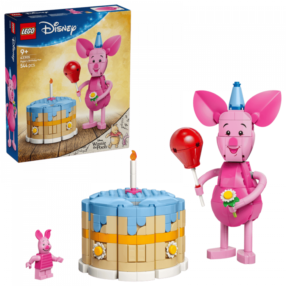 LEGO Disney 43305 Piglet’s Birthday Fun bevat 544 stenen en 1 minifiguur. De afmetingen zijn 17 cm hoog, 8 cm breed en 7 cm diep. De prijs bedraagt €39,99 (pre-order). Releasedatum: 1 maart 2026. Aanbevolen leeftijd: 9+.