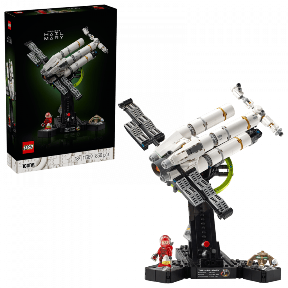 LEGO Icons 11389 Project Hail Mary bevat 826 stenen en 1 minifiguur. Het model meet 30 cm hoog, 25 cm lang en 22 cm breed. De prijs bedraagt €109,99. Releasedatum: 1 maart 2026. Aanbevolen leeftijd: 18+.